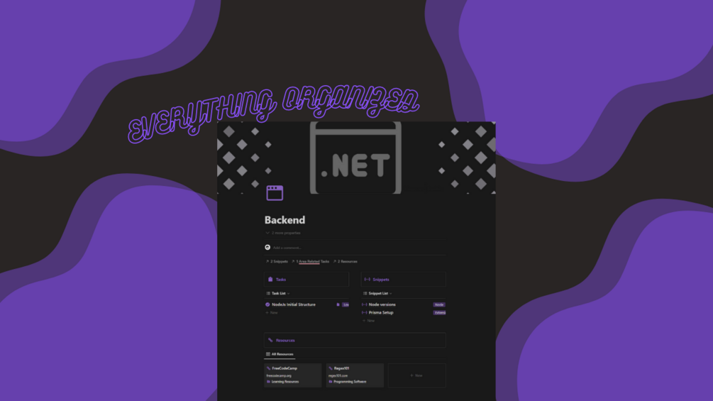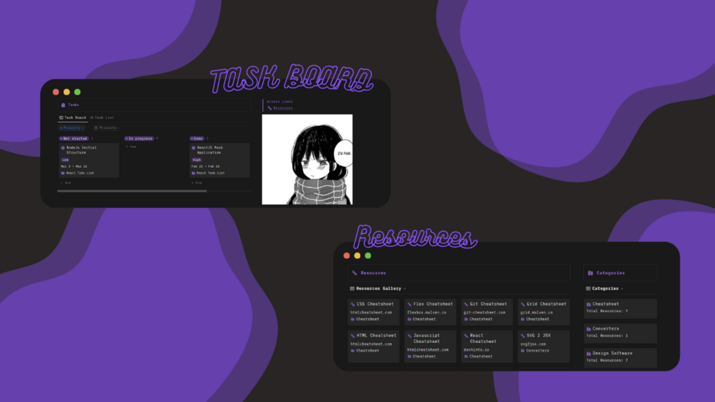 - Resources: Store useful links in their respective categories to help in future developments, these will also sync with their corresponding Area.