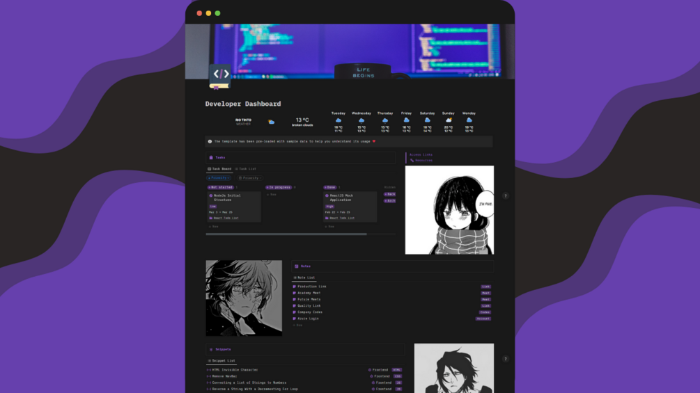 The perfect Dashboard for doubling your daily productivity as a Web Developer.